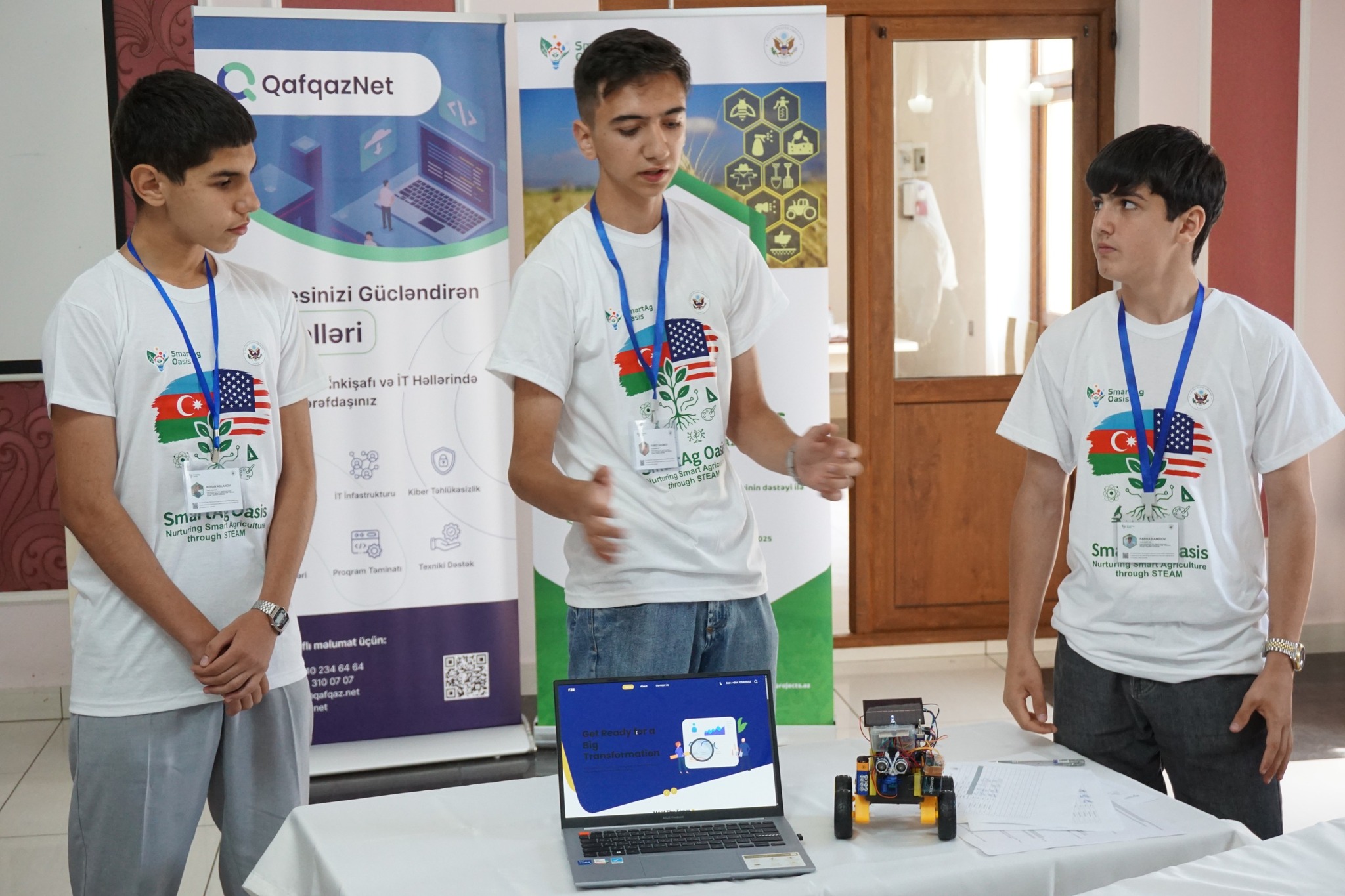 We are deeply grateful to the U.S. Embassy in Baku for their continued support throughout the program, to the Ministry of Science and Education for providing space and engaging schoolchildren in this initiative, to Qafqaz Net for supplying equipment for several teams, and to AMO Group for organizing a field visit to Amoris Company.